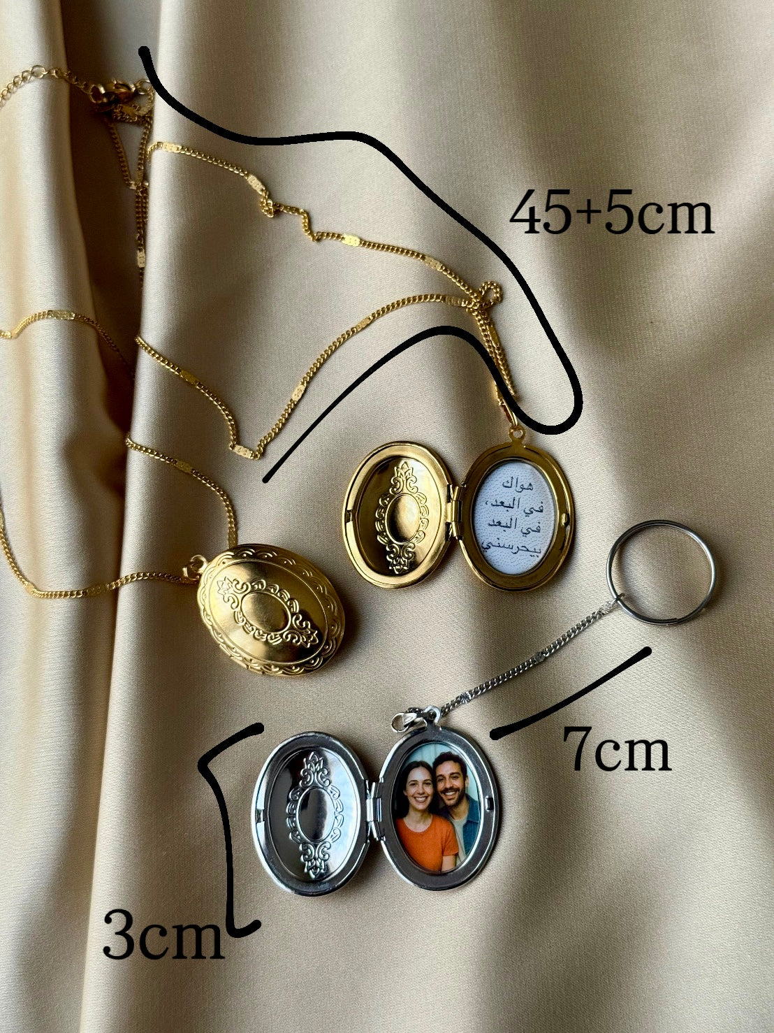 سلسلة بتصميم أنيق ومميز مع مساحة مخصصة لوضع صورة شخص عزيز، لتبقى معكِ دائمًا وتمنح القطعة معنى شخصي لا يُقدَّر بثمن. الصورة مثبتة بعناية ومقاومة للماء للحفاظ على جودتها وبريقها.