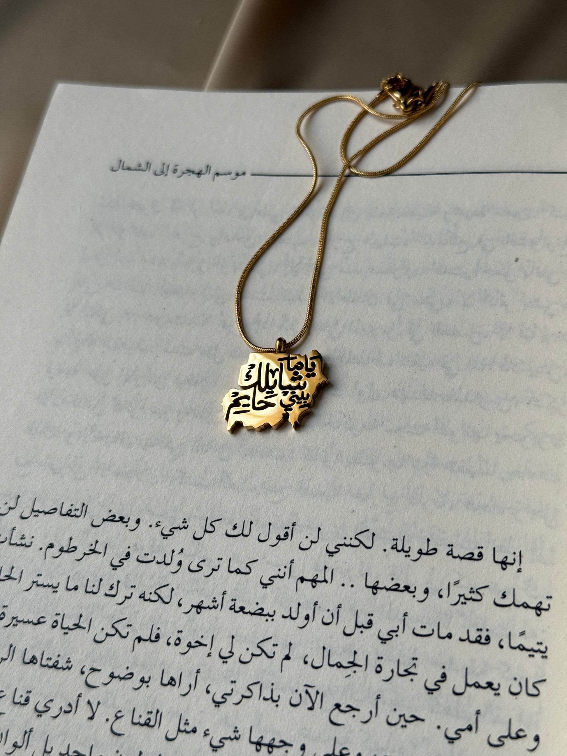 سلسلة بخريطة السودان بتصميم أنيق وفريد، منقوش عليها عبارة “ياما شايلك بيني حايم” لتجسيد عمق الانتماء والحنين. مصنوعة من ستانلس ستيل مقاوم للماء واللون الذهبي مطلي بالذهب عيار 18 للحفاظ على لمعانها وأناقتها. حجمها المثالي يجعلها مناسبة للاستخدام اليومي، كما تُعد هدية مميزة تعبّر عن الفخر بالوطن والمشاعر الأصيلة.